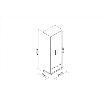 - Upon Assembly, Measures: 23.62 in. Length, 67.95in. Height, 16.14 in. Depth