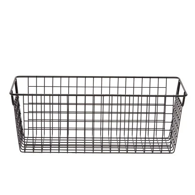 Keep a wide array of small items neat and organized with this 3-piece metal wire basket set. Our rectangular wire baskets are perfect for sorting magazines and other small items. Each of the black wire baskets features convenient handles and ample room to store envelopes, juice boxes, or school supplies. Each wire storage basket is made from durable iron with a rust-resistant finish that will complement any home or office decor. You will receive 3 wire storage baskets, each measuring 16 x 6 x 6 inches, perfect for any home, kitchen, or office.