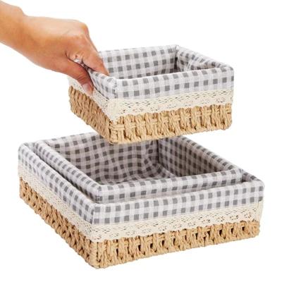- Nesting: These lined baskets stack inside of each other for convenient storage when not in use; ideal for your drawer, shelf, desk, laundry room, bathroom, nursery, or kitchen
