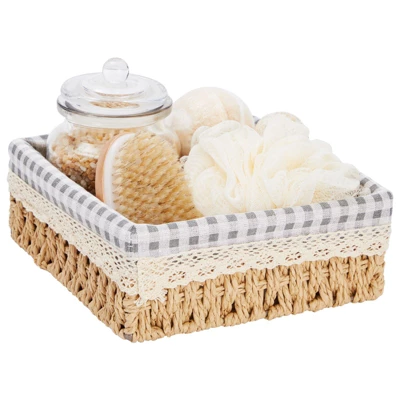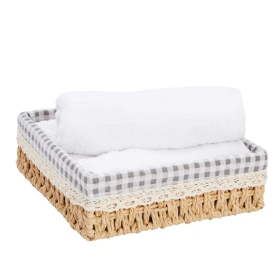 - Basket with Liner for Organizing: Use this set of rustic-style woven wicker storage baskets for organizing home essentials like magazines, clothes, toys, craft and school supplies, and hand towels