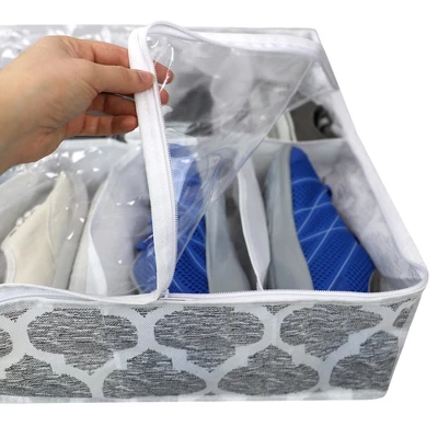 Perfect if you don’t want to have your favorite shoes from getting dirty. The durable zipper closure seals in your collection of shoes preventing dust from accumulating. With multiple compartments you can fit up to 12 pairs of shoes. A clear top lets you easily see what is inside without having to unzip the entire organizer, while the nylon handles help to pull the organizer out from underneath the bed for easy access.