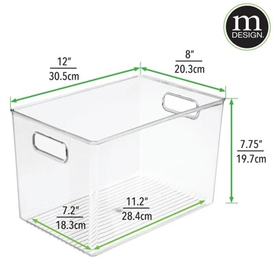 These plastic Storage Boxes by mDesign are perfect for keeping your home organized and clutter-free. They offer roomy space for a variety of items and they fit perfectly into cube storage shelving units. Slide these into the cubbies and you are ready to get organized! The open top makes it easy to see what is stored inside and quickly grab what you need. The integrated handles make moving the cube baskets on and off of shelves easy.