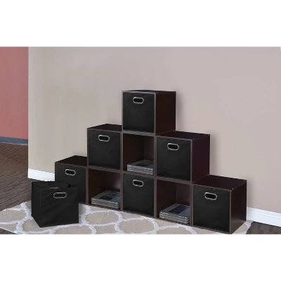 Find your Niche with versatile and modern Niche Fabric Storage Bins! Strong and durable, these bins each include a reinforced bottom panel that adds an extra layer of stability. With the bottom panel in place, they are sturdy enough to use on their own to hold files, scrapbook paper, children’s toys, towels, craft supplies and more. The bottom panel comes out and the entire bin folds flat for easy storage when not in use. Folded bins even fit perfectly inside an open one! Chrome handles are built into two sides of the bin, which makes carrying and moving it easy and worry-free. Inset handles are stronger than sewn-on cloth handles and won’t come unstitched or separate at the seams like cloth handles could. Measuring 12 x 12 x 12, Niche Fabric Bins are truly square and integrate seamlessly into Niche Cubo storage cubes. They can be used in any direction- there is no “right” side to face front because all sides measure the same! Personalize your bins by using the clear label holder on one side. Quickly and easily identify contents or assign bins to individual students. Ideal for every room in the house, make this set of 12 Black Niche Folding Fabric Bins a part of your home or office today!