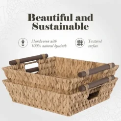 American Atelier Water Hyacinth Wicker Basket With Handles Square Woven Wicker Storage Baskets, Built-in Carry Handles Laundry Storage Or Pantry Bin