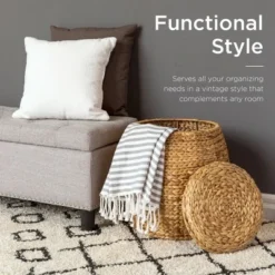 Best Choice Products Vintage Multipurpose Hyacinth Storage Organizer Tote Basket W/ Lid