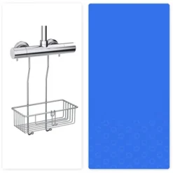 Bamodi 15″ X 9″ Shelf Hanging Stainless Steel Shower Caddy With Hooks – 2 Tier – Silver