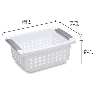 Don’t let clutter creep bury you in your own home. Tackle your biggest storage jobs with the Sterilite Small Stacking Basket and bring order and organization to any room in your house or office.A clean home is a happy home. Use this simple storage solution to reduce clutter, organize small objects, and bring a sense of cleanliness to the spaces you live and work in. These stacking Baskets feature accent rails that flip down allowing same size baskets to stack on top of each other, providing additional storage, without taking up additional surface area. Use these containers to organize and reduce clutter throughout the home – from countertops to cabinets; pantries to laundry rooms; and home offices to craft rooms. The stylish design allows these baskets to be left out in the open, providing easy access to items while reducing clutter.This special pack contains 16 small, stacking baskets.Bring organization and calm to the spaces you live and work in. With the Sterilite Small Stacking Basket, you get a simple and effective storage solution.
