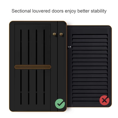 - Louvered Doors: For shoes’ longer service life and better hygiene, it’d be better to store our shoes in dry places with good air circulation. For this reason, this shoe cabinet is designed with three louvered doors. Such a design also endows the rack with an airy expression, making it easier to match your existing furnishings